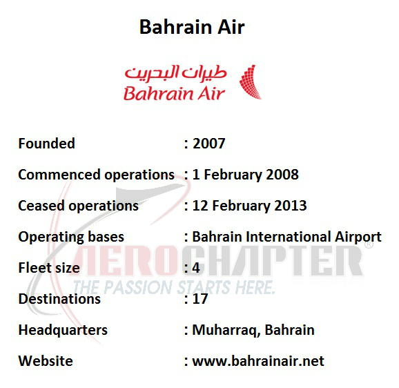 Bahrain Air was an airline of the Kingdom of Bahrain, headquartered in the Mohamed Centre in Muharraq. Its main base was Bahrain International Airport. The airline flew to 16 destinations in the Middle East, Africa and South Asia. In earlier statements the airline planned to increase its destinations to 23 cities by 2009 and up to 25 cities by 2010. Prior to its voluntary liquidation in 2013, Bahrain Air flew to 17 destinations (flights to Alexandria were seasonal). In 2012, the airline complained via local media about the measures undertaken by the Minister of Transportation, also the competing airline Gulf Air's head of restructuring committee when the airline's route schedule and frequencies were reduce by up to 30% without prior notice. The airline, having sought every route possible to overcome the Minister's act of Conflict of Interest, declared bankruptcy on 12 February 2013. The airline complained of conflict of interest.