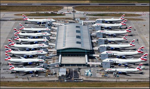 London Heathrow is the third busiest airport in the world. It has only 2 runways, one for takeoff and the other for only landing.